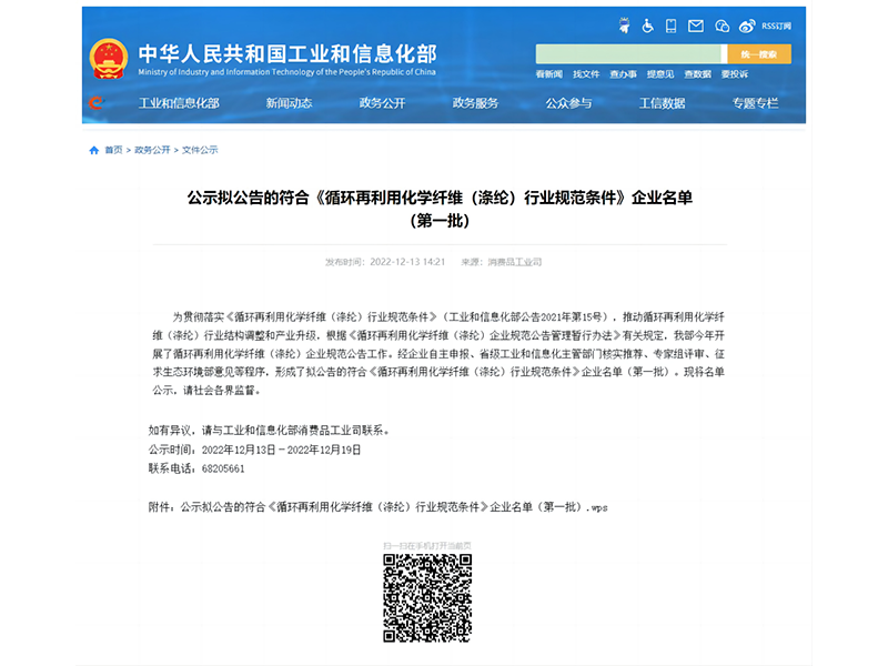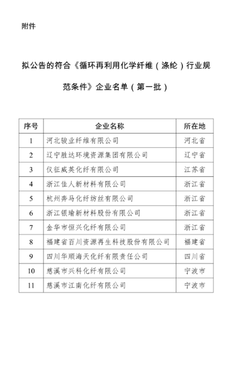 循環再利用化學纖維(滌綸)行業規范條件企業
