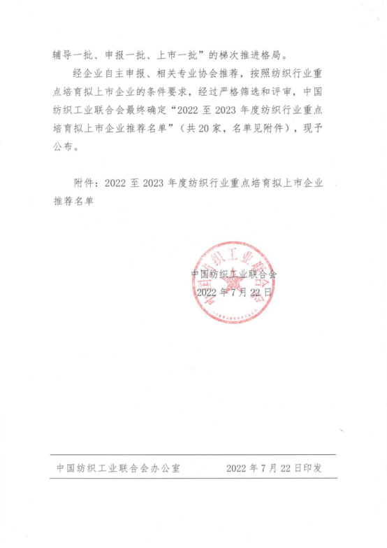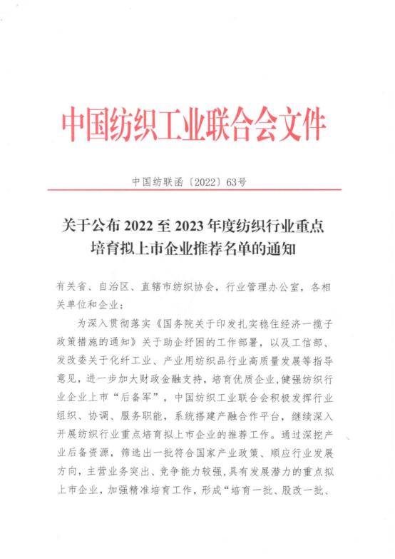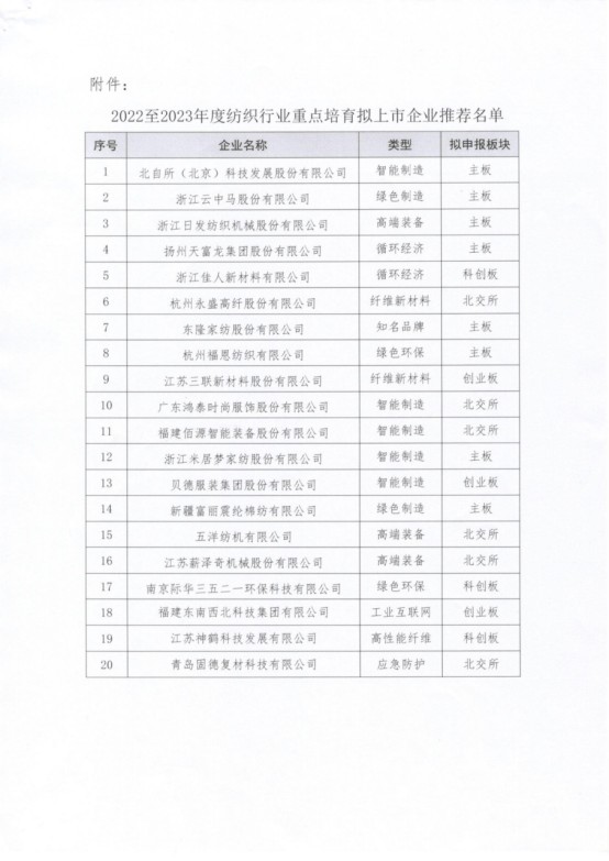 2022-2023紡織行業重點培育擬上市企業推薦名單
